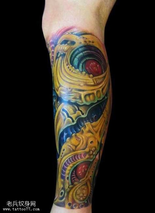 腿部3D高科技机械纹身图案