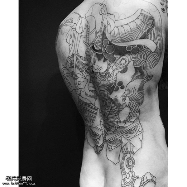背部经典日本风武藏纹身图案