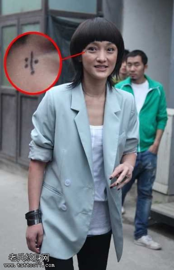 周迅脸部粉嫩时尚纹身图案