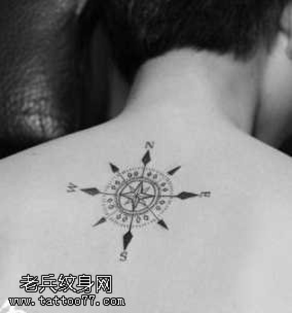 背部漂亮小巧的指南针纹身图案