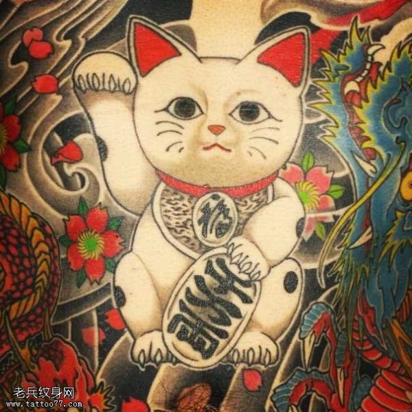 手稿招财猫纹身图案