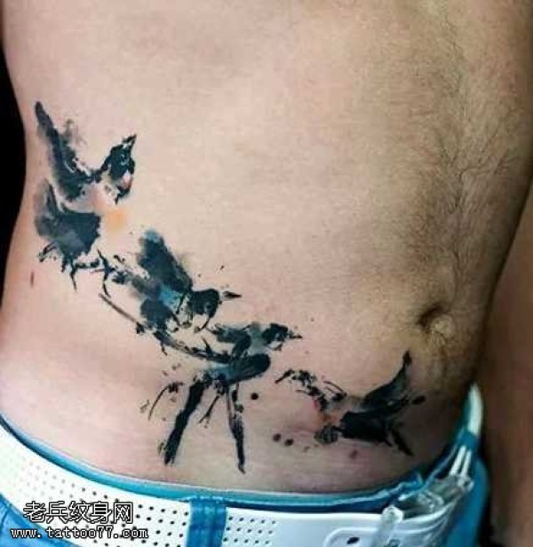 分享一款腰部时尚性感的蝶恋花纹身图案_腰部纹身图案大全_纹身图吧