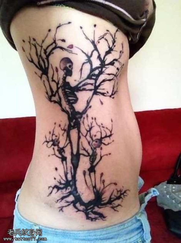 分享一款腰部时尚性感的蝶恋花纹身图案_腰部纹身图案大全_纹身图吧