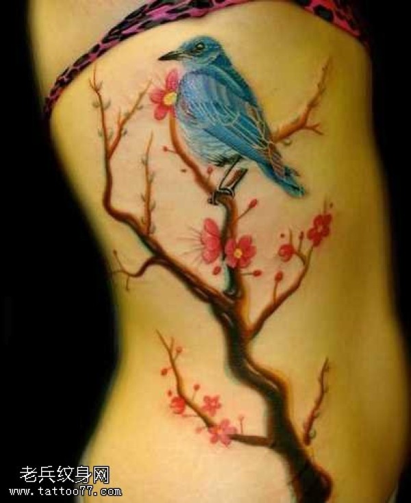 分享一款腰部时尚性感的蝶恋花纹身图案_腰部纹身图案大全_纹身图吧