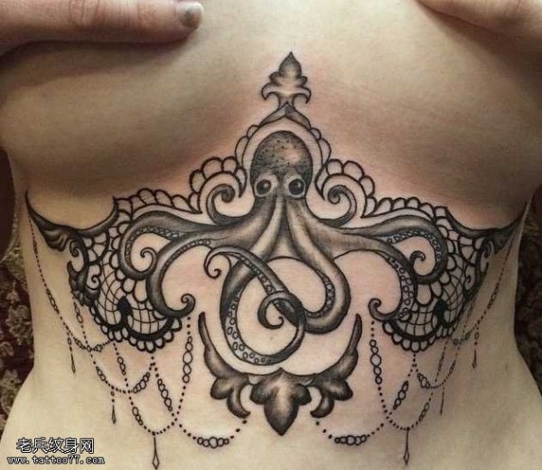 胸部大气的章鱼纹身图案