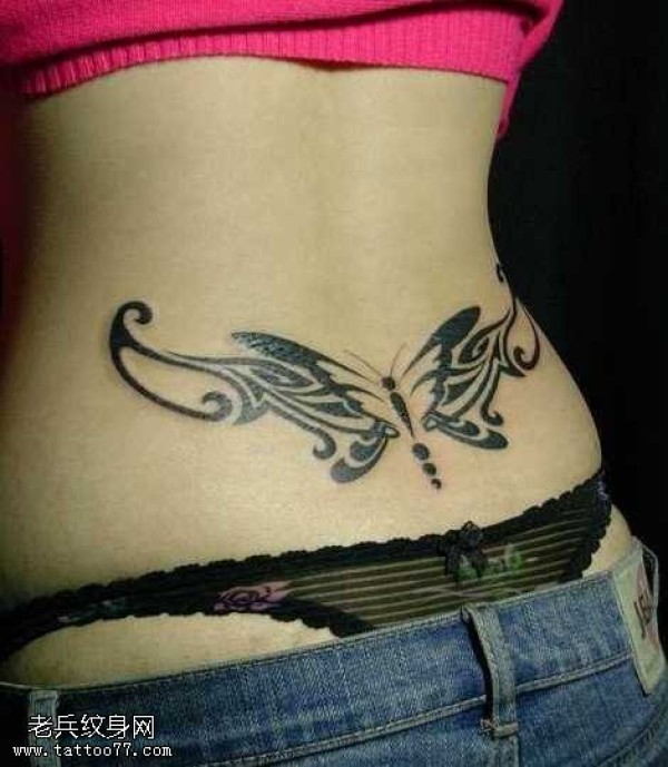 分享一款腰部时尚性感的蝶恋花纹身图案_腰部纹身图案大全_纹身图吧