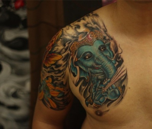 经典传统的象神半甲纹身