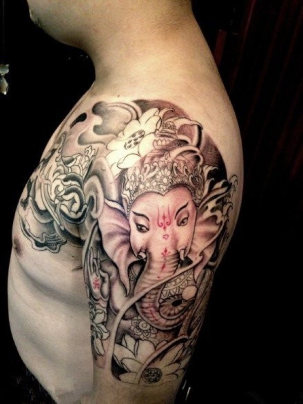 经典传统的象神半甲纹身