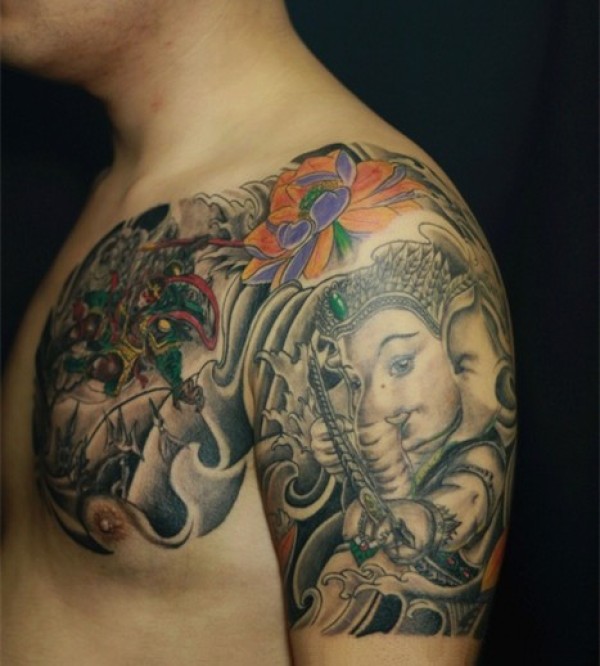 经典传统的象神半甲纹身