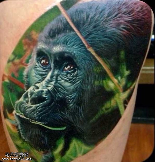 腿部大猩猩纹身图案