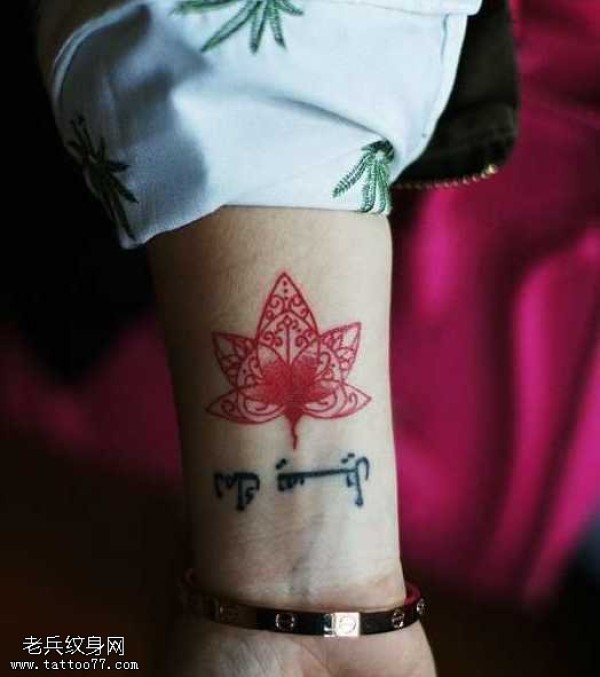 创意手腕红色小梵花纹身图案