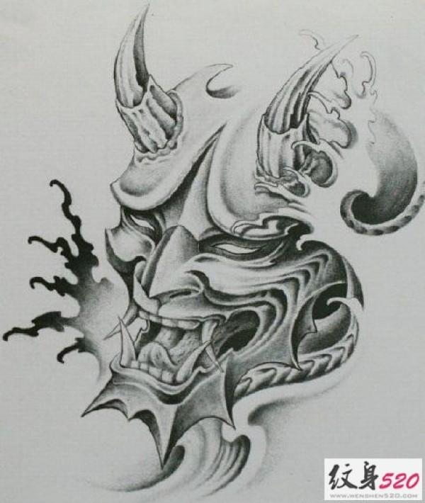 能面万媚纹身手稿_52张日式能剧面具纹身手稿图案素材欣赏