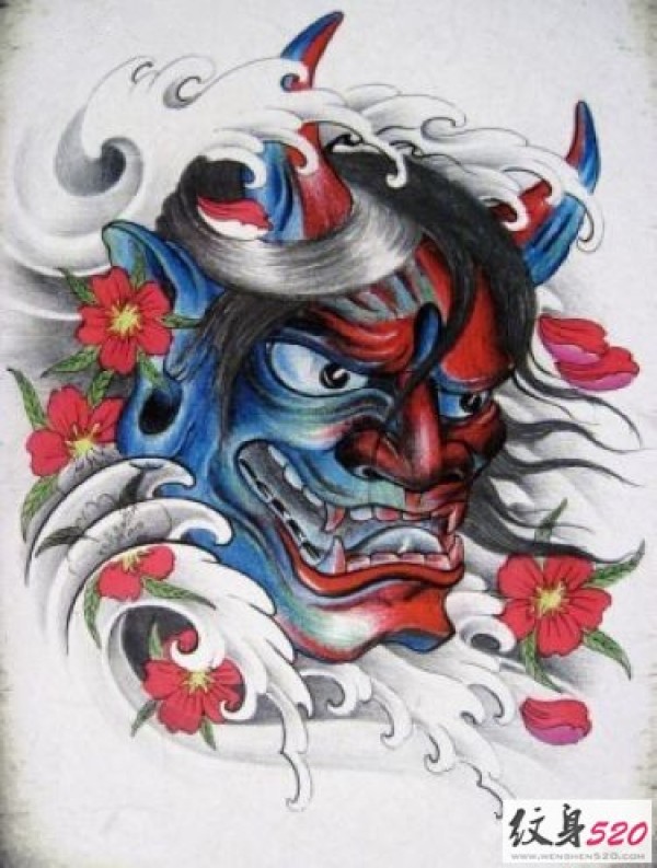 能面万媚纹身手稿_52张日式能剧面具纹身手稿图案素材欣赏