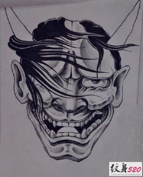 能面万媚纹身手稿_52张日式能剧面具纹身手稿图案素材欣赏