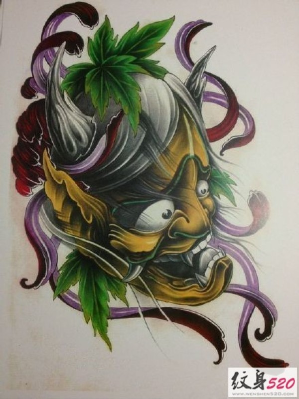 能面万媚纹身手稿_52张日式能剧面具纹身手稿图案素材欣赏