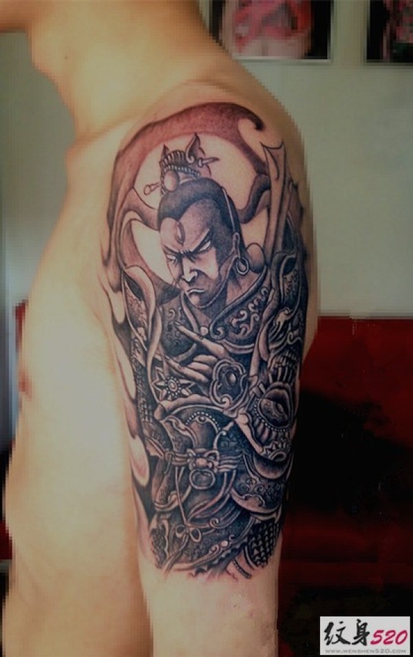 手臂大臂上个性霸气的二郎神杨戬纹身图案