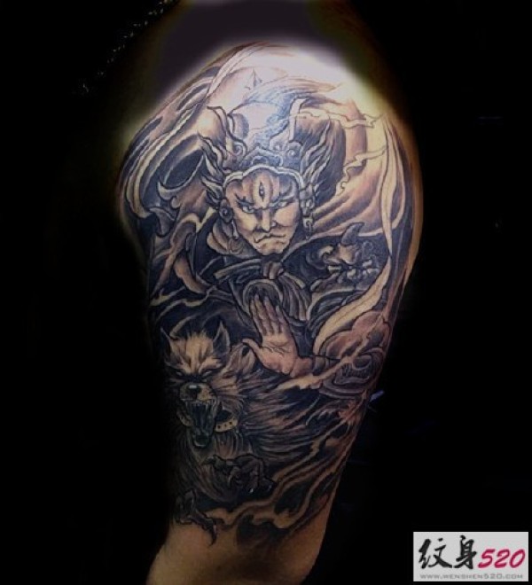手臂大臂上个性霸气的二郎神杨戬纹身图案