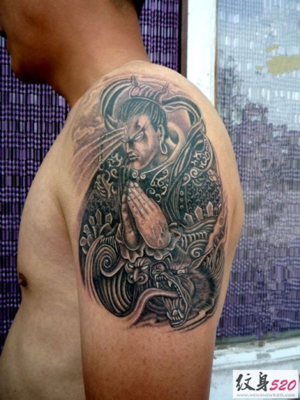 手臂大臂上个性霸气的二郎神杨戬纹身图案