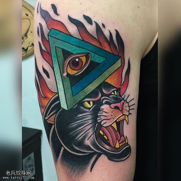 肩部三角眼黑豹纹身图案