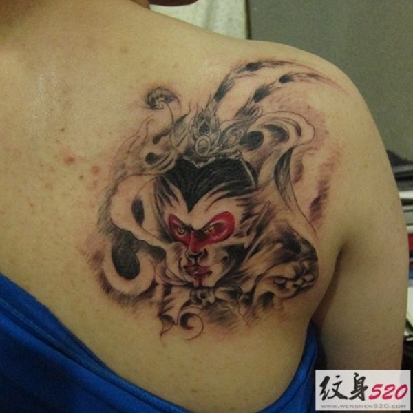 肩部个性霸气的齐天大圣孙悟空纹身图案