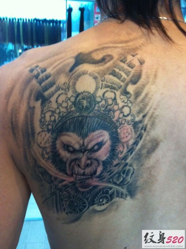 肩部个性霸气的齐天大圣孙悟空纹身图案