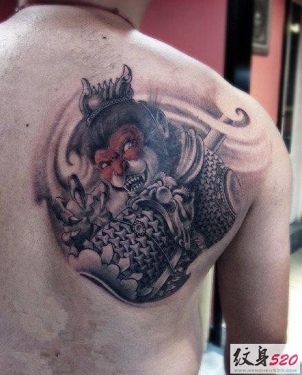 肩部个性霸气的齐天大圣孙悟空纹身图案
