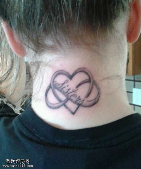 颈部漂亮的爱心图腾纹身图案