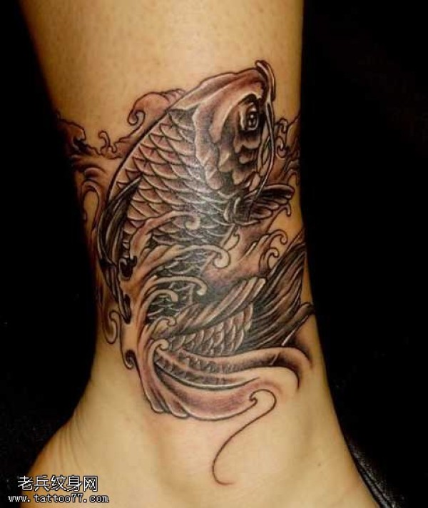 传统鲤鱼花小腿纹身_腿部纹身图案大全_纹身图吧
