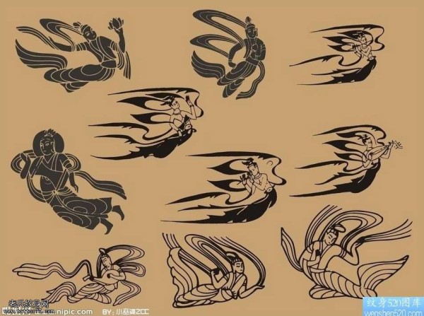手稿一套图腾飞天纹身图案
