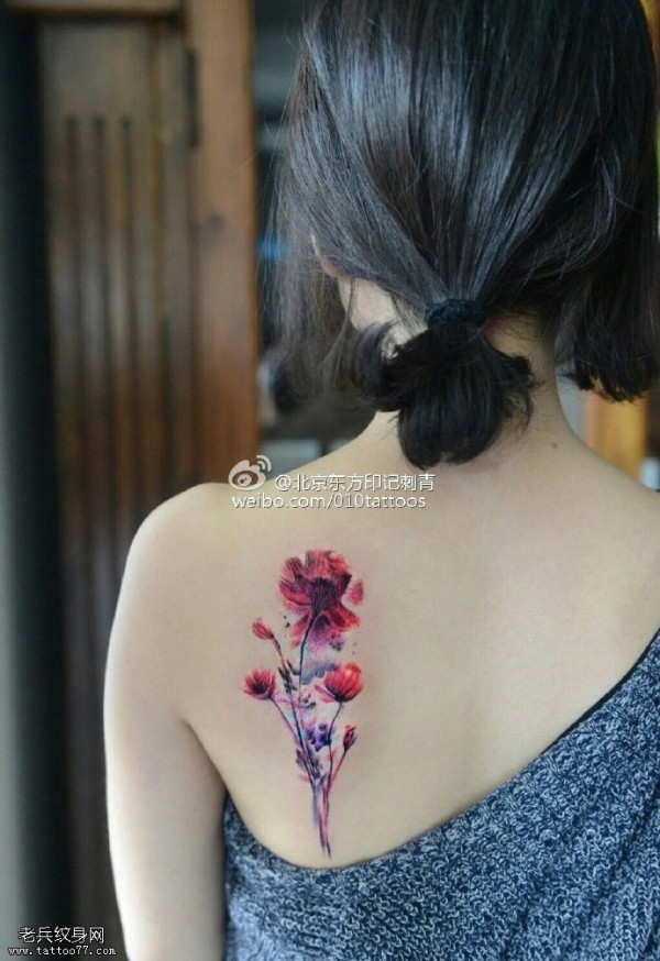 女性肩膀上多款漂亮的花朵纹身图案