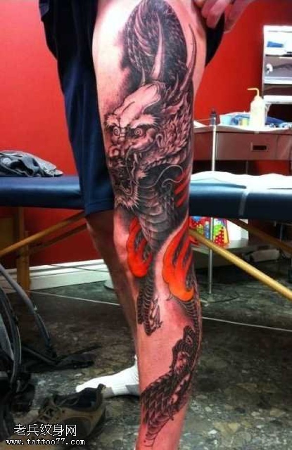 腿部霸气龙纹身图案