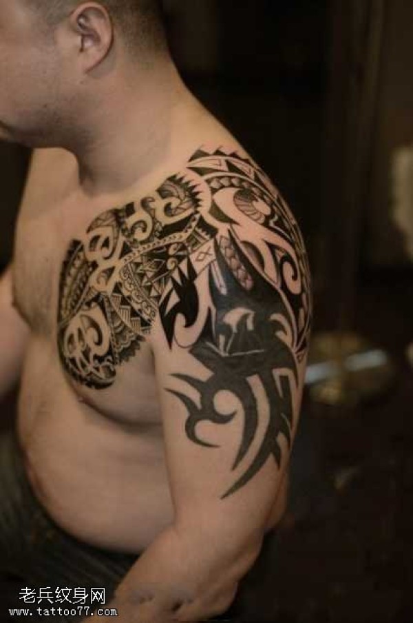 女生肩花纹身_15张女性双肩对称的肩花纹身图案作品图片