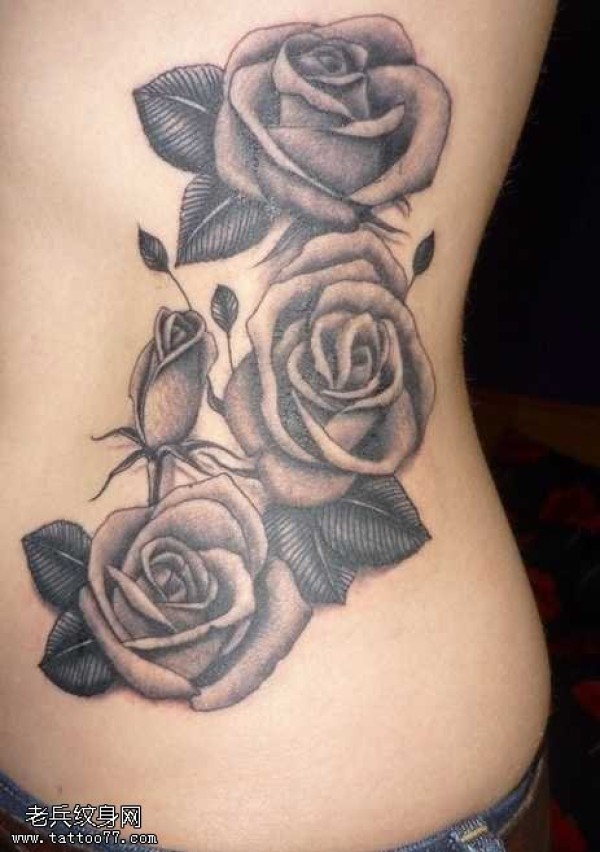 黑灰玫瑰纹身图案