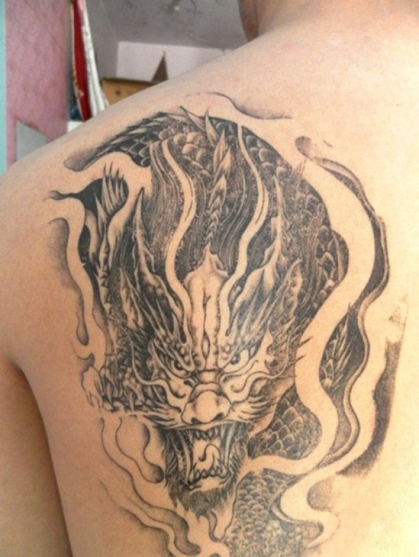 龙纹身手稿_一组老传统黑灰龙手稿纹身图案