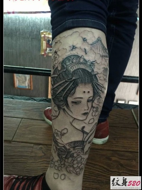 小腿艺妓纹身图案
