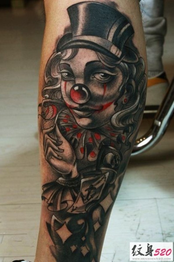 腿部小腿处的个性小丑纹身