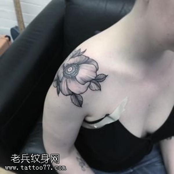 女性肩膀上多款漂亮的花朵纹身图案