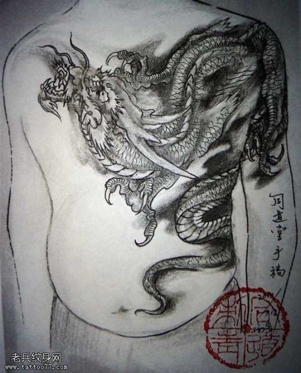 龙纹身手稿_一组老传统黑灰龙手稿纹身图案
