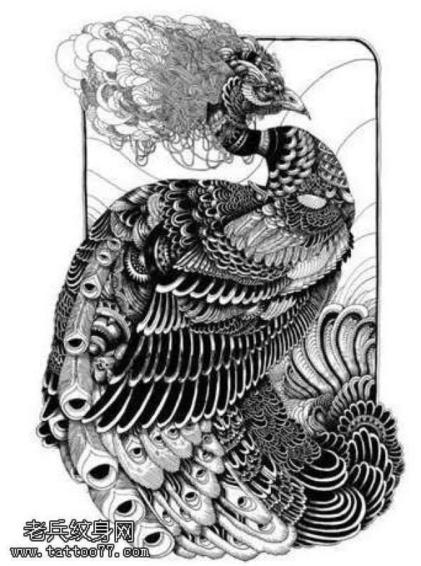 一张美丽的孔雀纹身图案