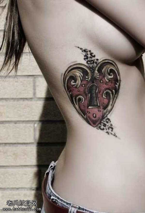 腰部独特的锁纹身图案