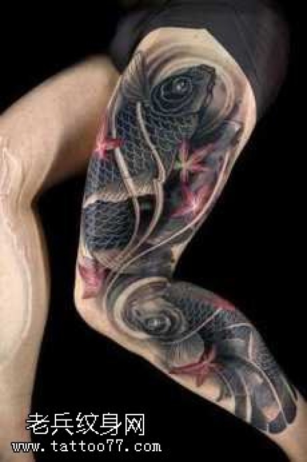 传统鲤鱼花小腿纹身_腿部纹身图案大全_纹身图吧