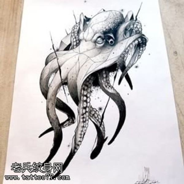 手稿一只章鱼纹身图案