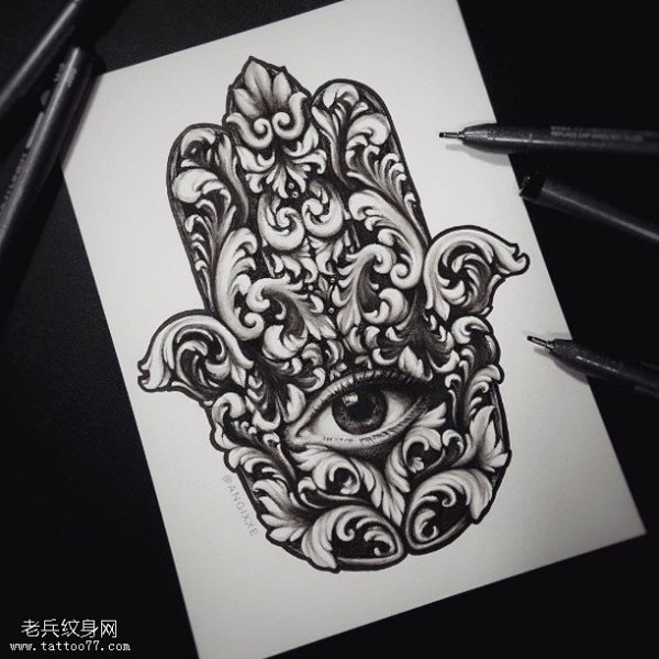 复古风手掌眼睛纹身图案