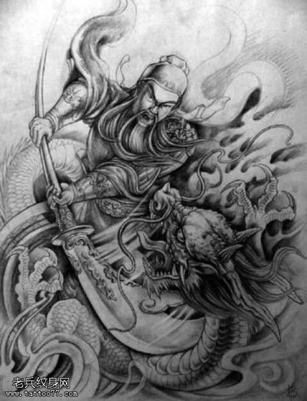 龙纹身手稿_一组老传统黑灰龙手稿纹身图案