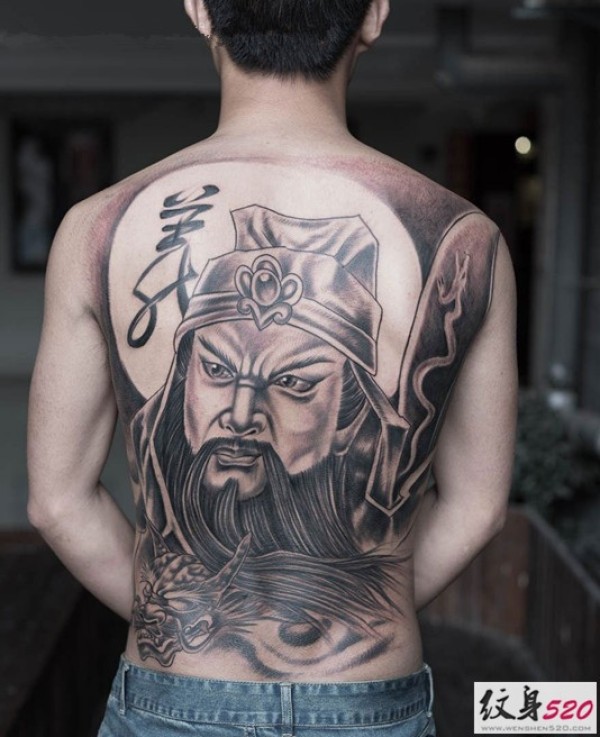义薄云天的关云长关公满背纹身