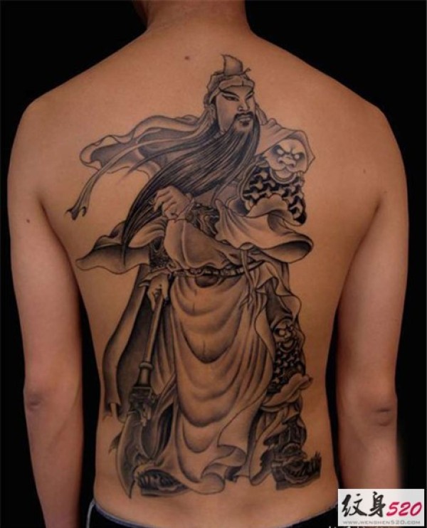 义薄云天的关云长关公满背纹身