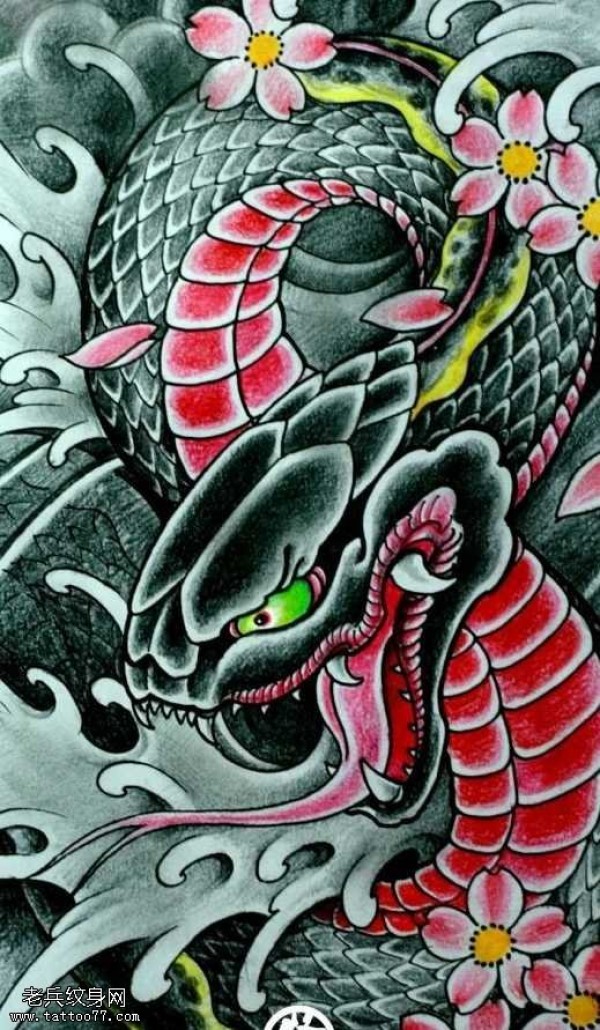 手稿一款很恐怖的蛇纹身图案