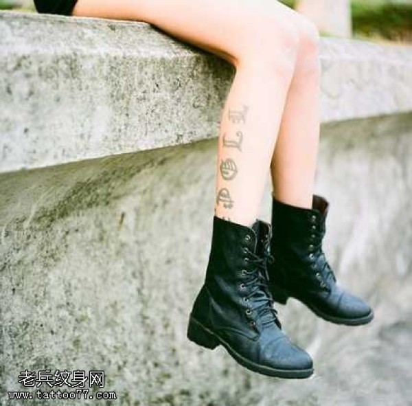腿部字符时尚纹身图案