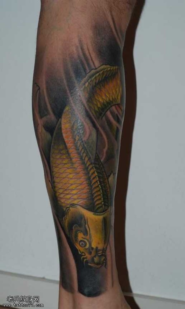 传统鲤鱼花小腿纹身_腿部纹身图案大全_纹身图吧