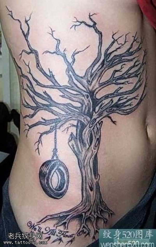 腰部枯树和轮胎纹身图案
